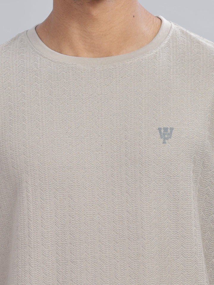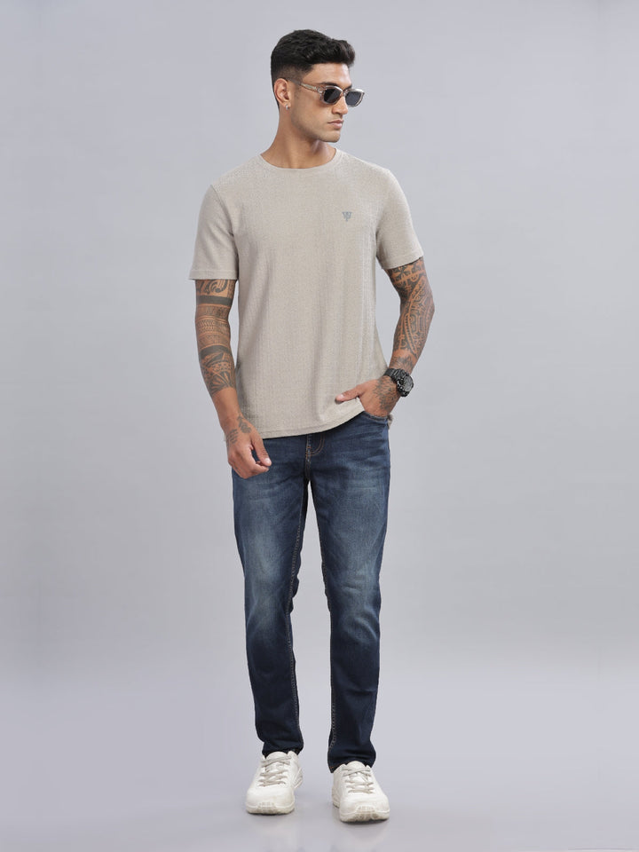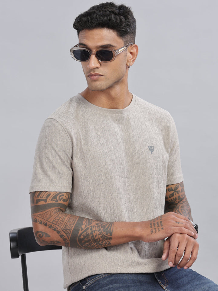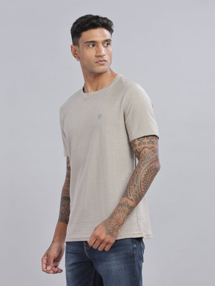 Beige Textured Solid Half sleeve Round Neck T-Shirt